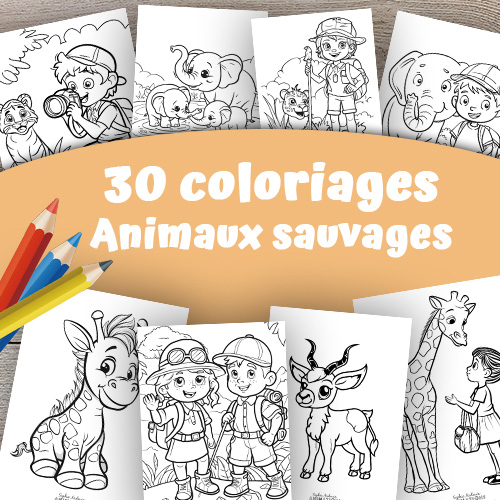 Pack 30 coloriages pour enfants – Thème Animaux sauvages
